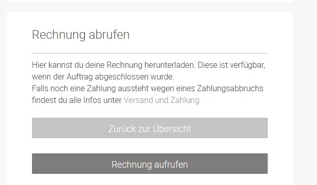 Nachdem du dort bei deinem Auftrag auf Details ansehen geklickt hast, kommst du auf die Übersichtsseite des Auftrages, wo es auch einen Button zum Herunterladen der Rechnung gibt.